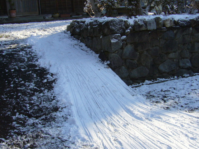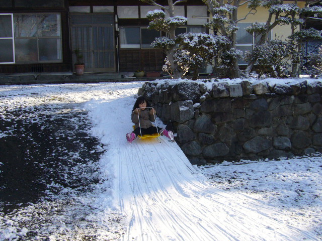 自宅は田舎の農家なので庭だけは広いんですよ・そこで・・家の庭に坂があるんで・・そこに雪を集めて子供用のソリ場をこしらえてました。。